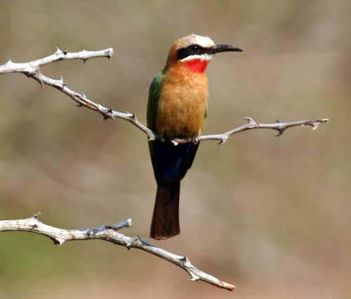 Helmeted Guinea Fowl: These are one of my favorite birds because they look so prehistoric. Normally they are very difficult to get close to but this one was part of a flock at the Injusthi Camp that woke us just before dawn with their hysterical cackles. |