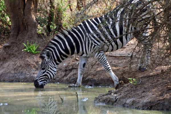 Zebra: This was one of two that came down to a waterhole. They were very reluctant to come anywhere near the hide in which we were sitting but eventually their thirst overcame their fear - but only just! |