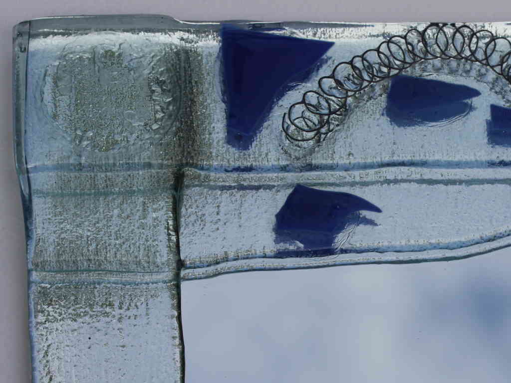 This frame is mostly clear glass and relies on the texture that comes from the kiln shelf and the few flashes of blue.