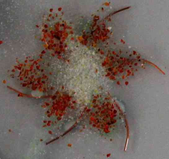 The first thing Barbara did with us was ask us to cut up some plane glass and make a simple pattern based arrangement. The star left and the flower at the very bottom are examples of this simple shape based fusing. Cathy’s flower is a particularly fine example which required careful cutting and patience to assemble.